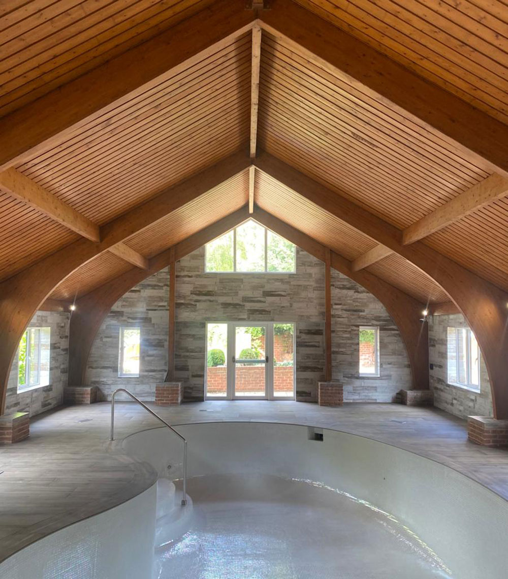 Throughout the shifts in colors, one crucial element has remained constant; the distinctive arch crowning the word ‘SPA’. This elegant design element pays homage to the oak gable ends of the pool building, infusing the logo with its quintessential charm and character.