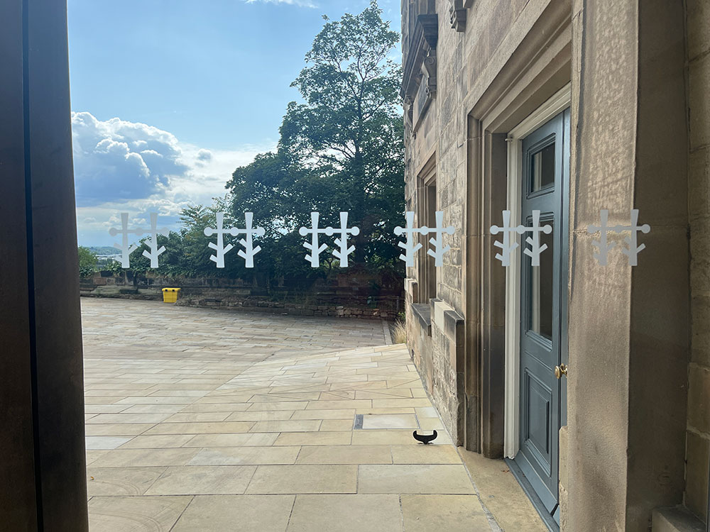 Immediately, the eye catches the repeated cross shapes cleverly forming the distinctive ‘TT’ characters of the word “Nottingham.” Furthermore, the recognition of arrow slits, once utilised by archers on the castle’s battlement towers, adds a historical depth to the design.